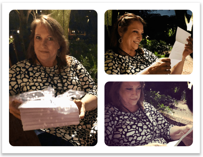 The birthday bird from Katroo visited me this year in the form of my sweet daughters who reached out to 60 of my friends and asked them simply to, “…please write a little something to my mother. It can be whatever you want. There are no rules.”